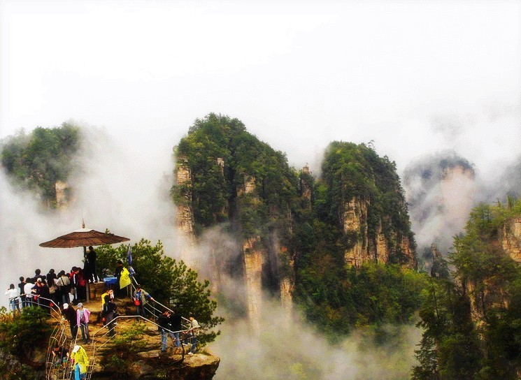 上午 :游覽天子山景區(qū)(仙女散花、御筆峰、天子閣、云巖等景點),賀龍公園,十大元帥之一的——賀龍銅像,后前往山下的景區(qū)游覽,下山后游覽十里畫廊景區(qū)(采藥老人、三姐妹峰、海螺峰、壽星迎賓等)。